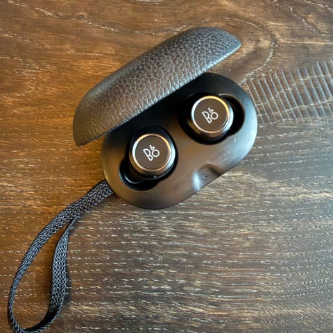 Bang & Olufsen trådløse ørepropper med tilhørende ladeetui. Øreproppene er svarte og leveres med et kompakt ladeetui for enkel oppbevaring og lading. Produktet er designet for trådløs bruk og har funksjoner som støtter daglig bruk og mobilitet.