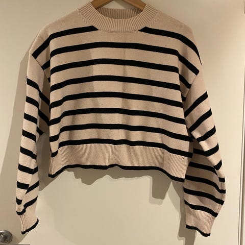 Hollister genser i størrelse S. Flerfarget med stripemønster. Designet for kvinner.