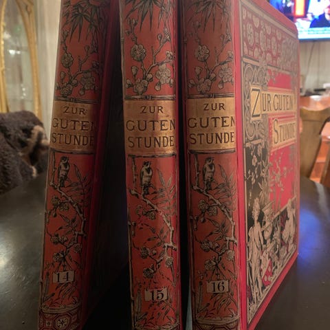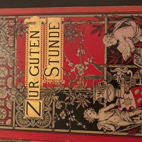 Zur guten Stunde er en antikk bokserie bestående av flere bind med illustrasjoner. 1895 del 2 Bøkene har dekorativt omslag med detaljerte motiver, og inneholder kunstneriske bilder og tekst. Serien er egnet for samlere eller som dekorative elementer.