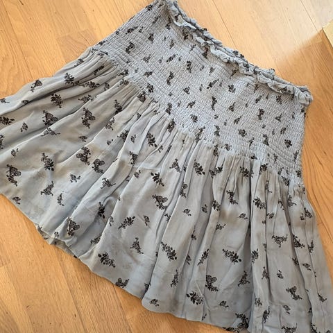 Blyantskjørt fra Ganni i str S. Brukt kun 1 gang. Nydelig skjørt i blonder. Svartunderskjørt og mørk blå blonde stoff utenpå. Strik i midjen.