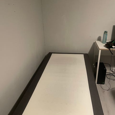 Seng i tre med madrass gi bud