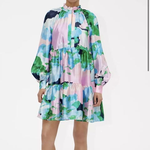 Love Lolina sommerkjole i bomull, størrelse S, farge hvit. Kjolen har detaljer som knapper foran, volanger og en feminin passform. Den er designet for kvinner og egner seg til bruk i varme værforhold.