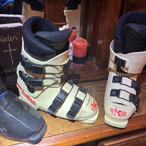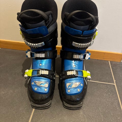 Nordica alpinstøvler i størrelse 23,5 (ca EU 37) hvit farge. Skistøvlene har fire spenner for justering og en solid såle.