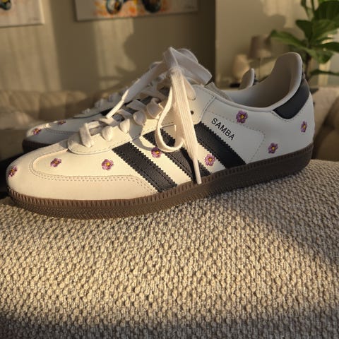 Veja Sneakers joggesko i størrelse 39. Skoene er hvite med detaljer i lys grå, laget av skinnmateriale. Egnet for daglig bruk og ulike fritidsaktiviteter.