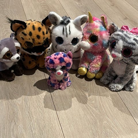 Ty kosedyr i mykt materiale. Rund form med oransje og beige farger. Passer for små og større barn.