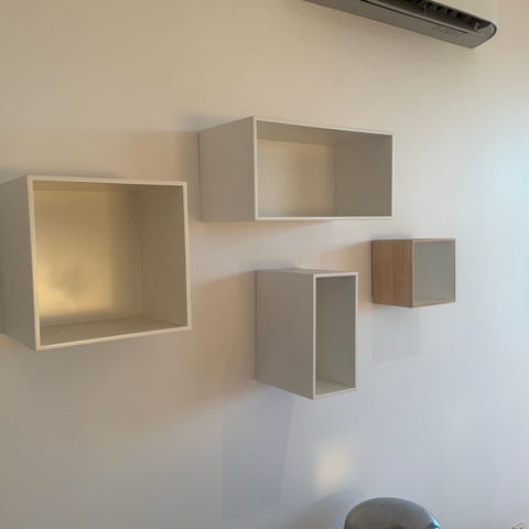 Selger en godt brukt muuto stacked hyller. Hyllene står på podium og kan designes slik man selv ønsker. Klemmene som holder hyllene sammen er lakkert svart.