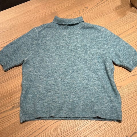 DAY Birger et Mikkelsen Aubrey høyhalset genser i størrelse L for damer. Genseren er grønn og laget av en ullblanding som inkluderer 32% ull, 32% alpakka, 30% polyamid og 6% elastan. Materialet består delvis av resirkulerte fibre. Genseren har kort erme og er egnet for bruk i kaldt vær.
