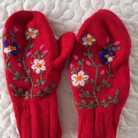 Flotte ullvotter til dame/ungdom/barn. Dette er hjemmestrikkede votter. Vottene er pent brukt, og har derfor mye bruk igjen.