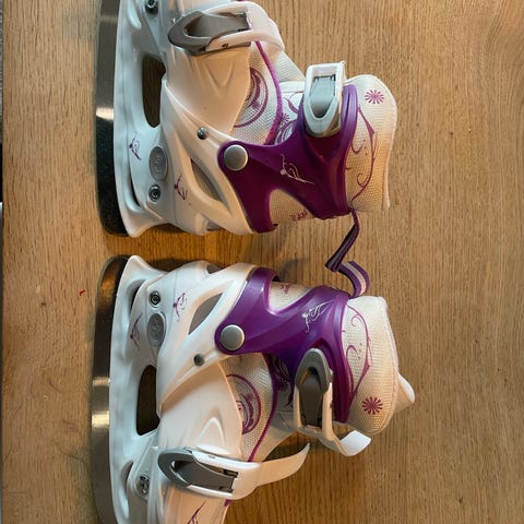 Lengdeløpsskøyter til barn i skinn. Passer 22cm fotlengede eller str 33 i skostørrelse. Pent brukt i god stand