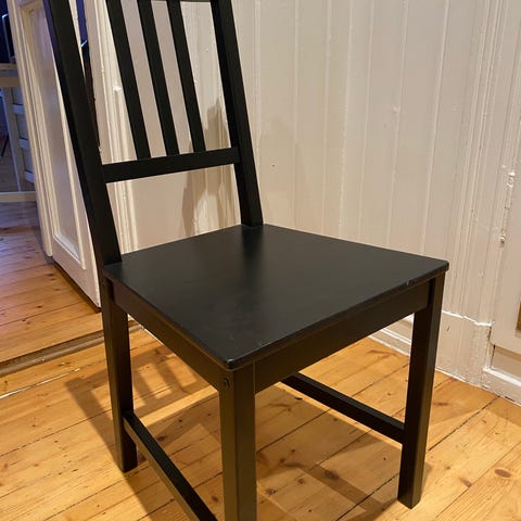 Fire Stefan stoler til kjøkken/spisestue selges rimelig. De har noen merker i lakken, men er solide og hele ellers.