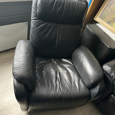 Selger to svært komfortable lenestoler som kan legges bakover. Den ene lenestolen har riper etter katt.