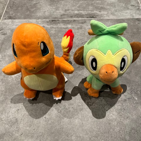 Pokémon kosedyr av modellene Vaporeon, Eevee og Jolteon (?) Myke kosedyr i forskjellige farger som blå, brun og gul. Egnet som samleobjekter eller leker for barn.