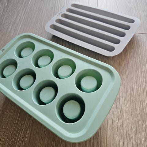 Form i silikon fra Kitchn for å lage store isbiter, eller f eks til å fryse ned hjemmelaget babymat eller saus. En isbit måler ca 5x5 cm. Formen måler 17x11 cm