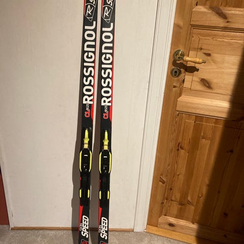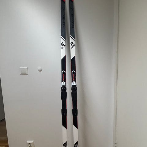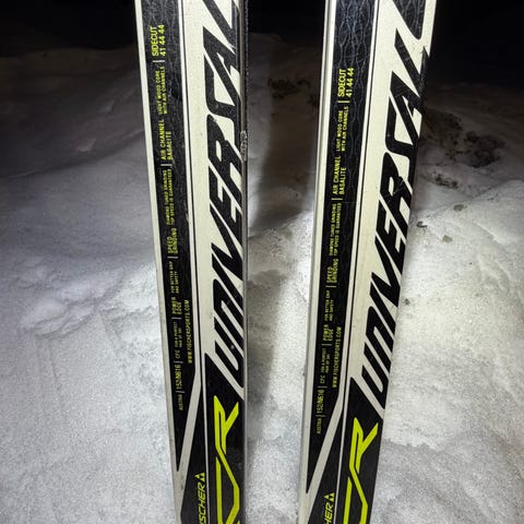Fischer twin skin sprint langrennsski. Skiene har svart og gul farge og er utstyrt med bindinger. Nypris 2000kr.
