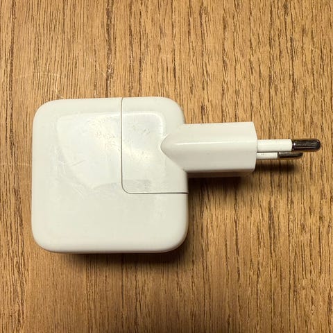 Selger en original Apple USB-strømadapter (12W). Laderen har noen overflateriper (mikroriper), men er i god teknisk stand og fungerer som den skal.