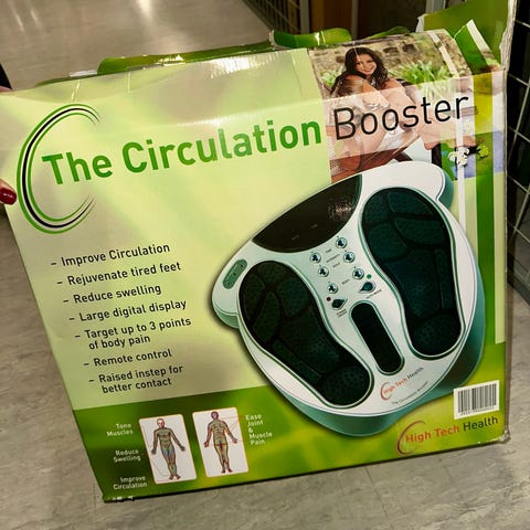 Fotmassasjeapparat med ulike massasjefunksjoner for føtter. Produktet har markeringer for fotsoner og knapper for justering av massasjeinnstillinger. Egnet for hjemmebruk for avslapning og stimulering av føttene.