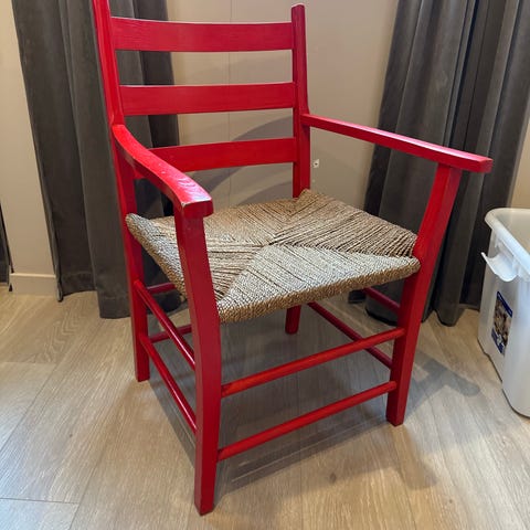 Jærstol gyngestol selges. Flettingen er i ekte siv. Noe slitt i flettingen. Mange bruksmerker.