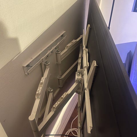Magic remote control fjernkontroll, strømkabel, veggoppheng og 4 par 3D briller følger med. Foten følger ikke med.
