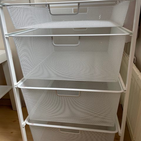 2 Elfa hylleknekter og to korte veggskinner