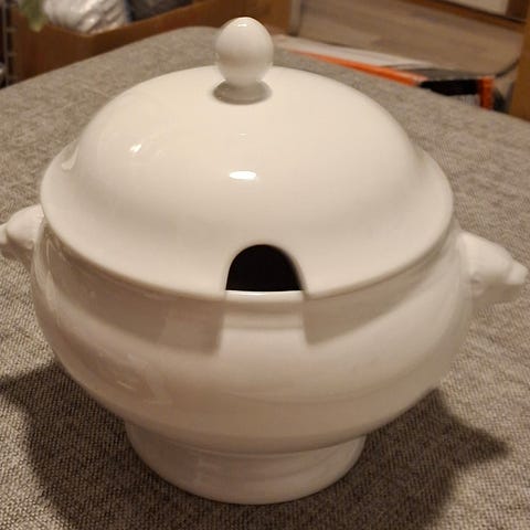 Søkeord seltmann weiden terrin suppeterrin suppebolle porselen helena bavaria west germany tysk porselen vintage retro 70 tallet 1970 tallet serveringsbolle med lokk terrin med lokk hvitt porselen klassisk design tidløs design borddekking servering kjøkken interiør samlerobjekt brukt porselen pent brukt kvalitetsporselen europeisk porselen vintage kjøkken retro interiør gjenbruk second hand elegant servering