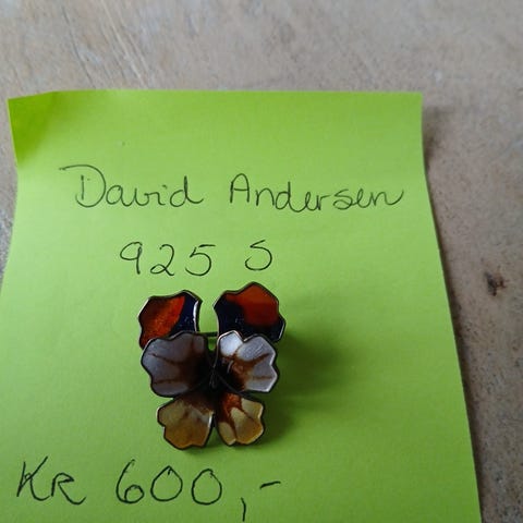 Meget pen liten fredsdue med olivengren i nebbet utført i forgylt sølv og hvit emalje av gullsmed Arne Nordlie.