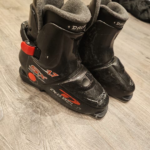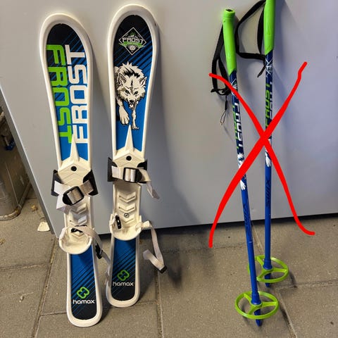 Selger et par barneski i plastski for de aller yngste barna. Enkel å bruke med "vanlige" sko, fotstøtten kan justeres i lengden, slik at den passer flere skostørrelser.
