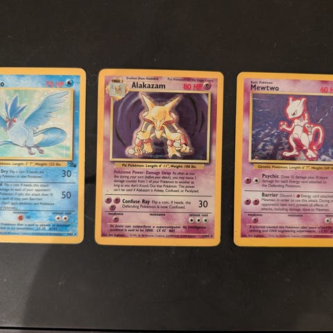 Veldig fine. Hvis du ser veldig nøye etter er det et ørlite merke i ene hjørnet på Radiant Charizard.