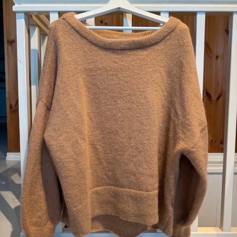 H&M Genser i mohair, ull, elastan og polyamid i fargen hvit/kremhvit, størrelse M. Ny pris 799,-