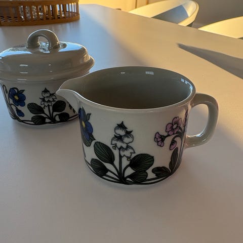 Som nytt, bortsett fra krakelering i glasuren på lokket til sukkerskålen. Se bilde.