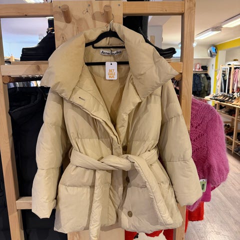 Varm Acne Studios 2-i-1 vinterjakke. Du kan ta av ytterlaget/skallet og bruke den som en tynnere jakke, eller bruke den komplett som en ekstra varm vinterjakke.