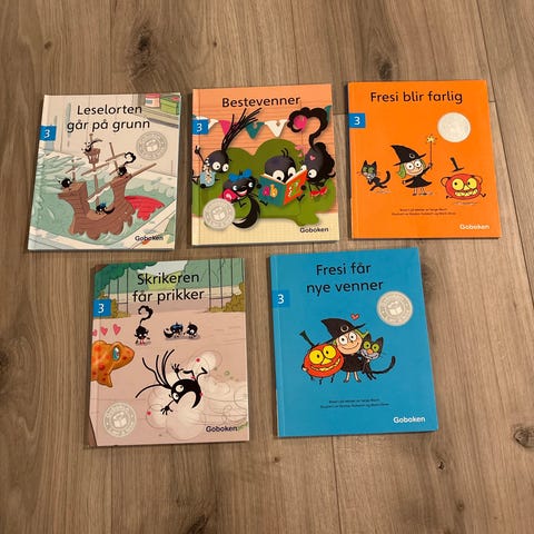 Goboken barnebøker selges samlet. Bøkene har illustrasjoner og er designet for barn.