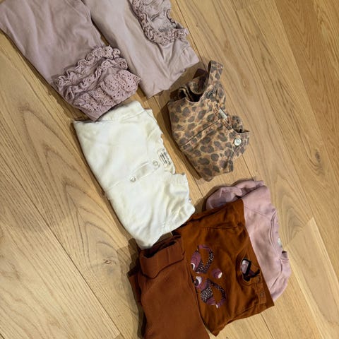 8 bodyer, flere er ubrukt, 1 genser, 1pyntetruse, 1kjole ,strømpebukse, sokker