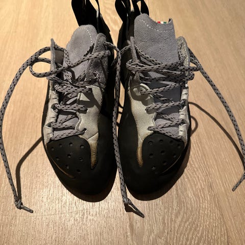 Klatresko i størrelse 38 (liten i størrelsen) lite brukt. Men ligget lenge i skapet siden jeg ikke har klatret på mange år.