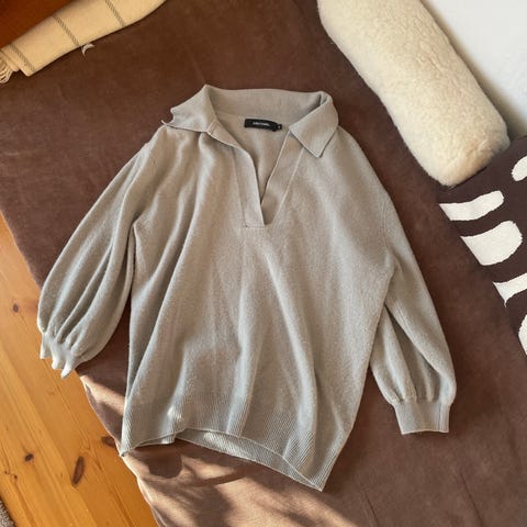Denne genseren er strikket i merkets signatur brushed cashmere, et børstet kashmir som gir en usedvanlig myk og sky-lignende tekstur. Resultatet er et plagg som føles lett og luftig, men samtidig varmt og innbydende.