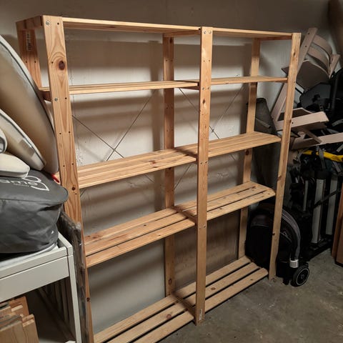 Trehylle i kurant størrelse. Fungerer fint til oppbevaring. Passer godt i bod, garasje eller kjeller. Selges rimelig grunnet endrede behov.