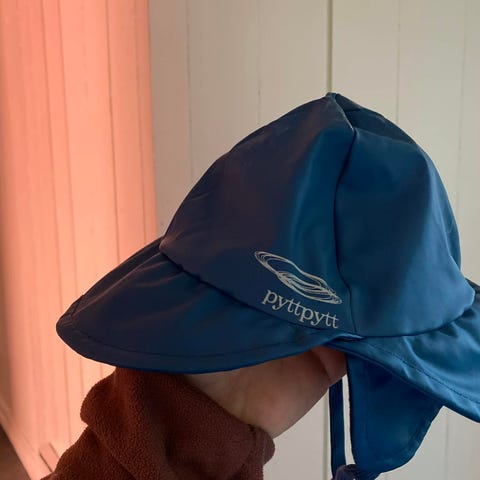 Blå sydvest, lite brukt i one size.