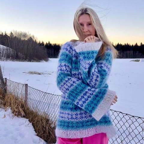 Blome genser,str L,strikket I Maya Alpakka Blend selges kr 1600