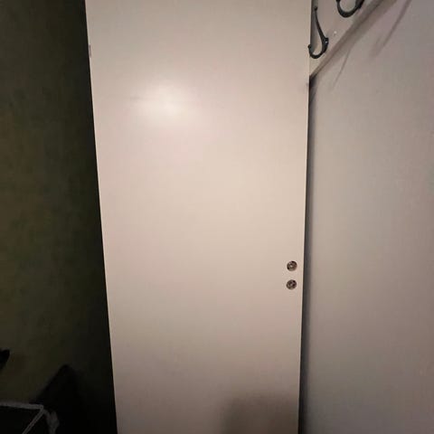 Gammel kontor dør uten ramme men med lås mekanisme som fungerer