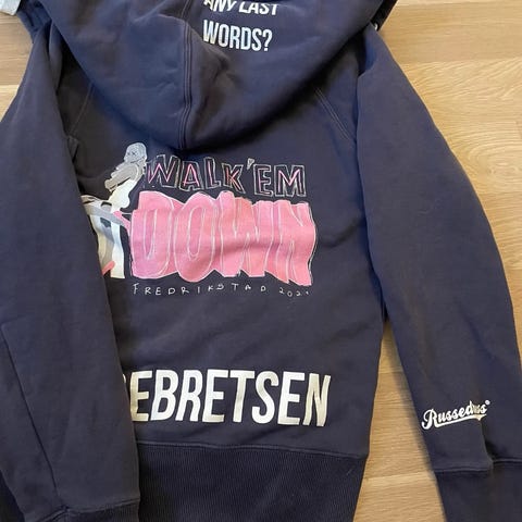 Russedress hettegenser i størrelse XS for kvinner. Genseren er grå og laget av bomull.