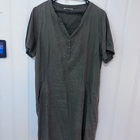 Marie Philippe Hverdagskjole i størrelse 44, laget av 100% lin. Kjolen er blå og designet for kvinner. Den har kort erme og knappelukking foran. Materialet gir god pusteevne og komfort, egnet for hverdagsbruk.