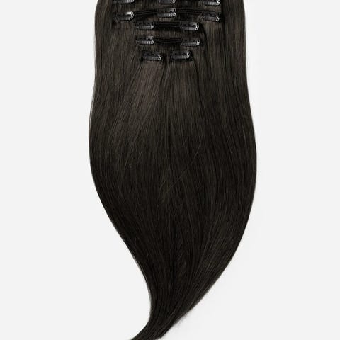 Disse extensionsene er designet for å gi volum og lengde med en naturlig, krøllete tekstur. Settet har innsydde klips for enkel påføring. Fargen som vises er en mørk askebrun ombre med lysere tupper.