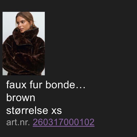 «Faux Fur Short Jacket» fra Gina Tricot. Vurderes solgt da jeg helst vil ha en annen farge. Helt utsolgt i alle farger og strl i butikk og på nett! Utrolig populær jakke, så her er det første mann til mølla!