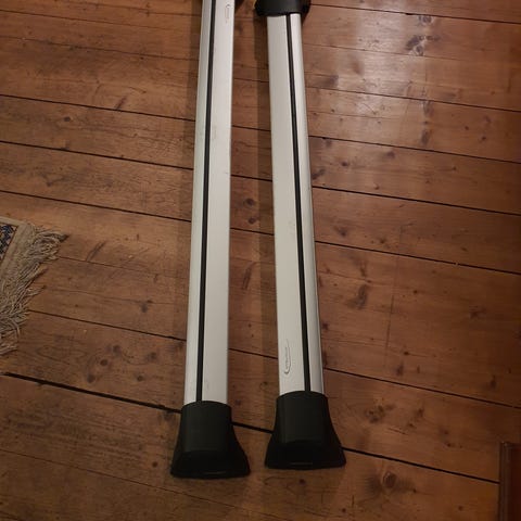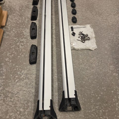 Nissan takstativ i aluminium. Passer til montering på bilens tak for ekstra lastekapasitet. Leveres som et sett med to tverrbjelker.