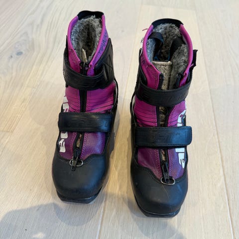 Alpina Frost langrennsko for barn i lilla farge. Skoene har borrelåsfester for enkel tilpasning og godt grep på sålen. Egnet for barn som ønsker støtte og komfort under langrenn. Varm uttakbar innerstøvel i en type ullfroté.