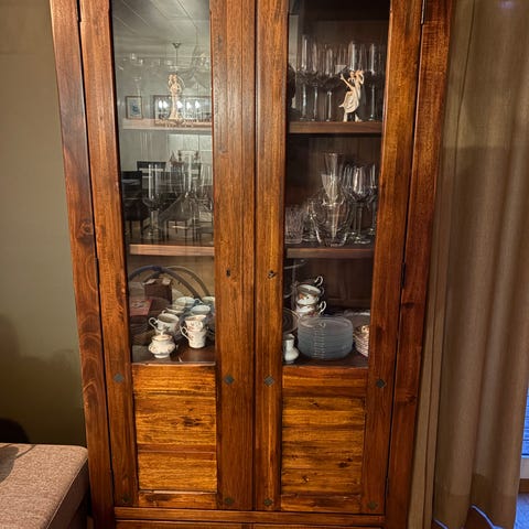 Pent og helt Bombay vitrineskap selges 1900 kr. Kan være behjelpelig med levering mot betaling.