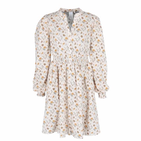 Elegant maxikjole med omslagsoverdel og delikat strukturert blomstertekstur. Kjolen har lange, lett puffede ermer og komfortabel strikk i midjen som gir en feminin og flatterende silhuett. Det myke, fallende stoffet skaper et vakkert uttrykk og god bevegelse.