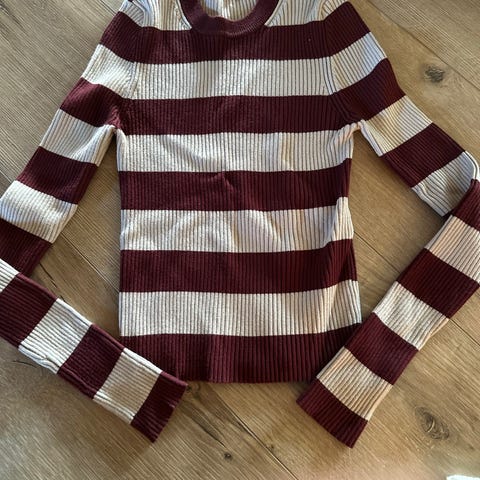 Ribbestrikket med krage. Lite og pent brukt. Ingen bruksmerker. Ny by pris kr 800,-