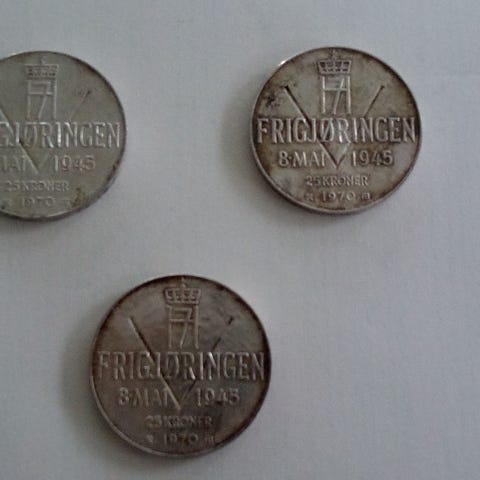 25kr 1970 i sølv og viser detaljer fra frigjøringsfeiringen.