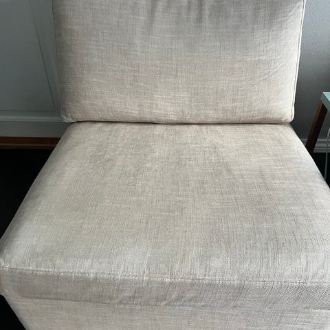 Solid og fin Leopold sofa fra Slettvoll selges på grunn av flytting. Farge varmgrå/taupe farge i solid striestoff. Avtagbare trekk på putene (vasket). Brunbeisede ben.