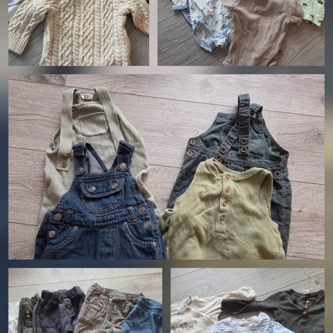 Selger klespakke for både gutt og jente i str. 74! Stort sett i beige og hvit.